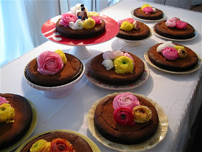 This one was made by the amazing Tabitha: 11 cakes baked over two days on an ordinary oven (she took annual leave to complete the batch). They were stored in pizza boxes before the big day and involved more than two kilograms of melted chocolate (and I’m sure, a hell of a lot of marathon stirring – she’s bound to have some impressively buffed arm muscles as a result).