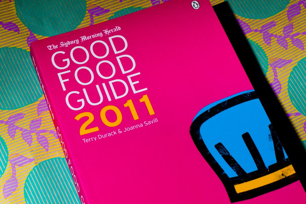 One of the nicest surprises I’ve had as a food blogger has been this – getting asked to be part of the review team for the latest Sydney Morning Herald Good Food Guide. The book has just had its hot-pink debut – it was launched just a few hours ago at the Good Food Awards, an evening full of honours, surprises and, as the hours passed, impressive demolition of many wheels of gourmet cheese.